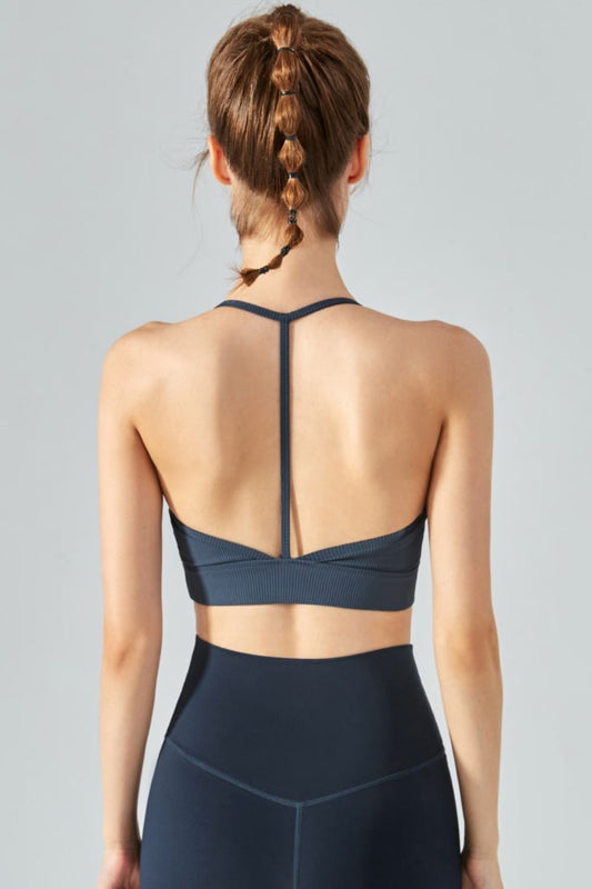 Ribbed Halter Neck Open Back Cropped Sports Cami
