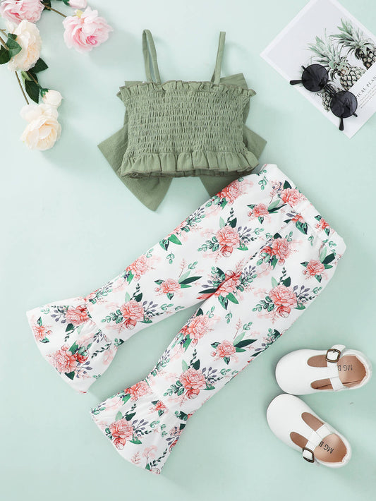 Girls Bow Detail Cami and Floral Flare Pants Set
