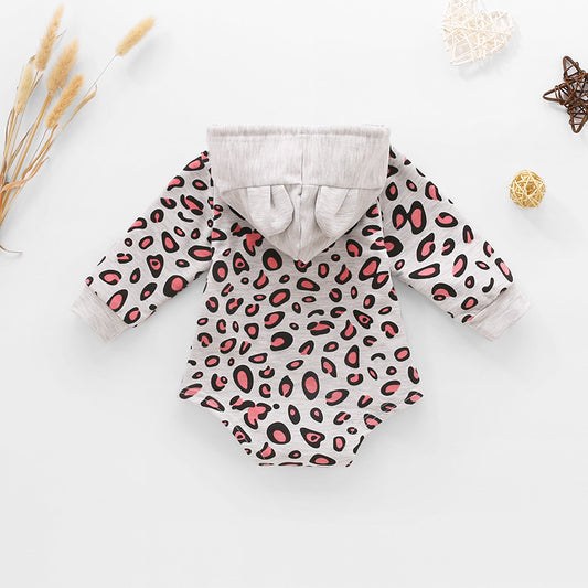Baby Leopard Print Drawstring Hooded Bodysuit